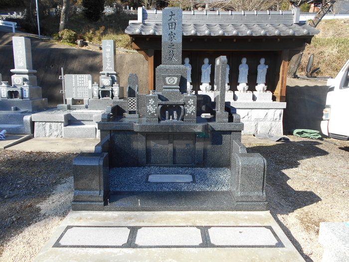 グレー系の石をご希望でしたので、G654長泰と北大青、インド黒山崎のご提案をしました。 一番グレーに近く値段も安いのが、G654で、北大青、インド黒山崎の順です。 施工実績が近くにありましたのでご覧になっていただいたのですが、文字彫刻やサンドプラスとの絵柄が、石目が細目なので綺麗なんですね!...